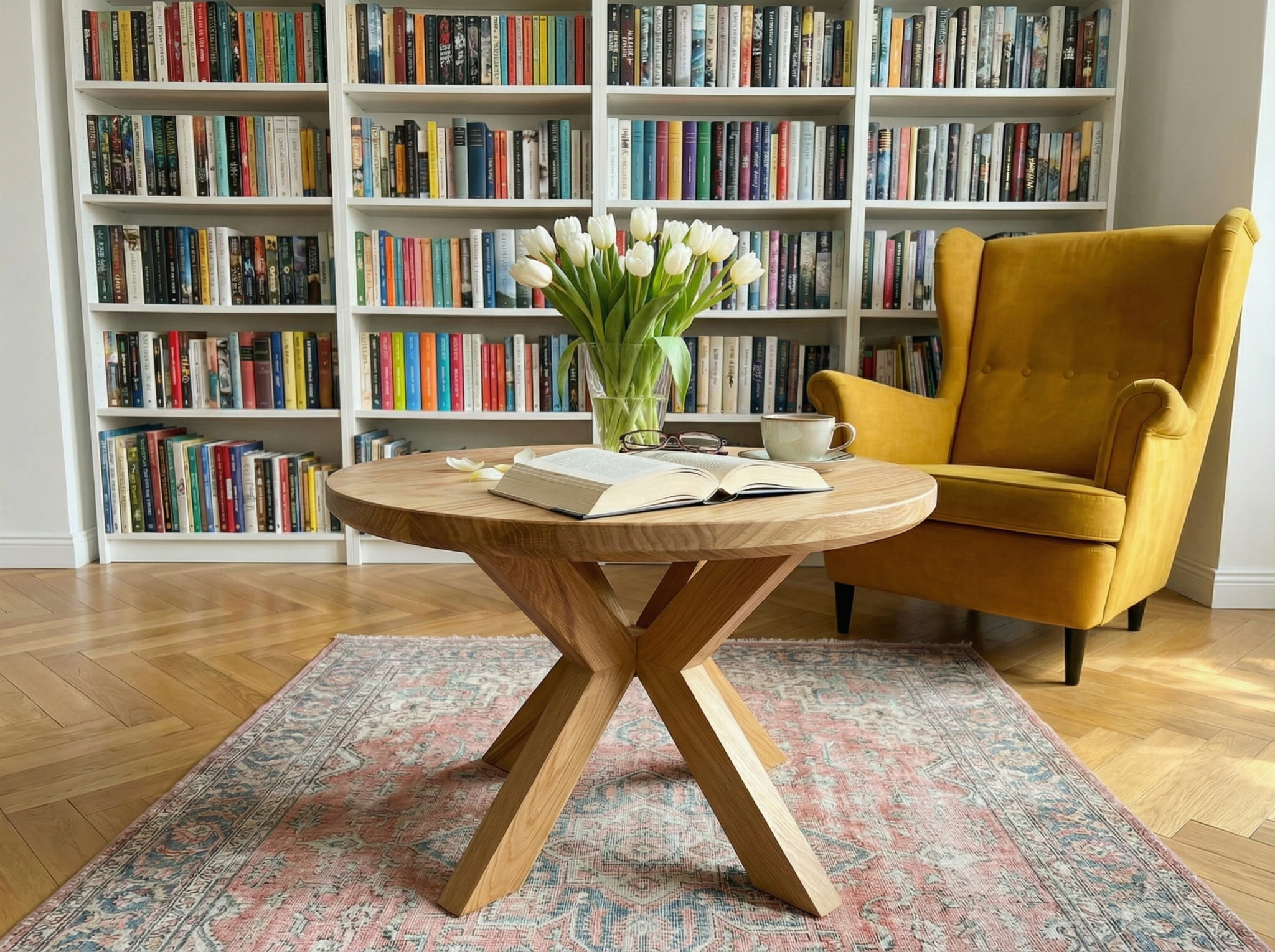 Specyfikacja modelu stolik kawowy drewniany okrągły dąb do salonu 50 cm